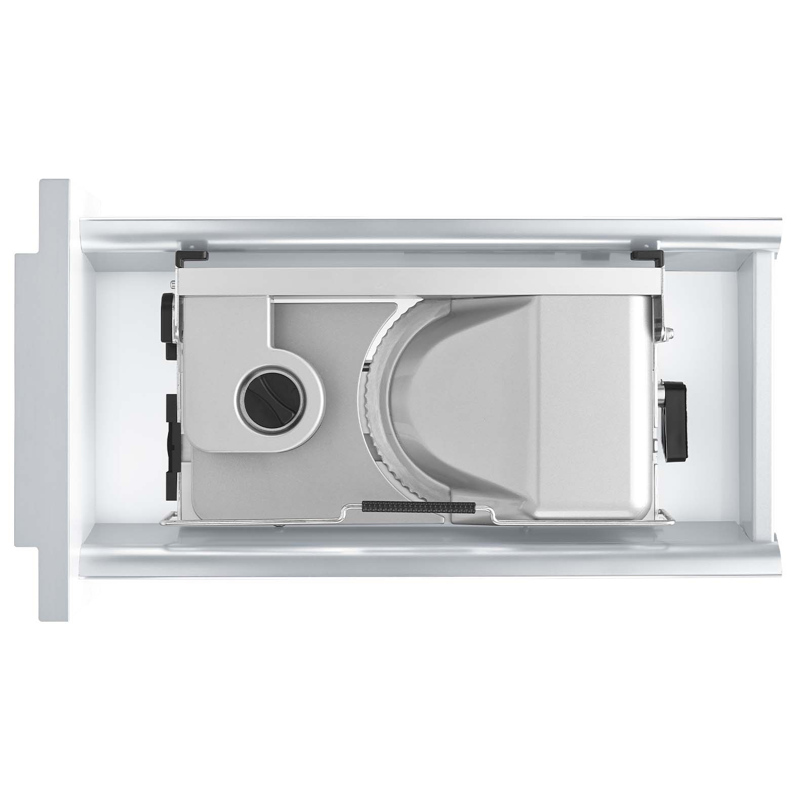Discover the AES 52 S built-in food slicer - the perfect solution for your kitchen when it comes to space-saving and efficient food preparation. Specially designed for installation in drawers with a cabinet width of 30 cm or more, this all-purpose slicer offers a right-sided food guide that guarantees convenient handling.