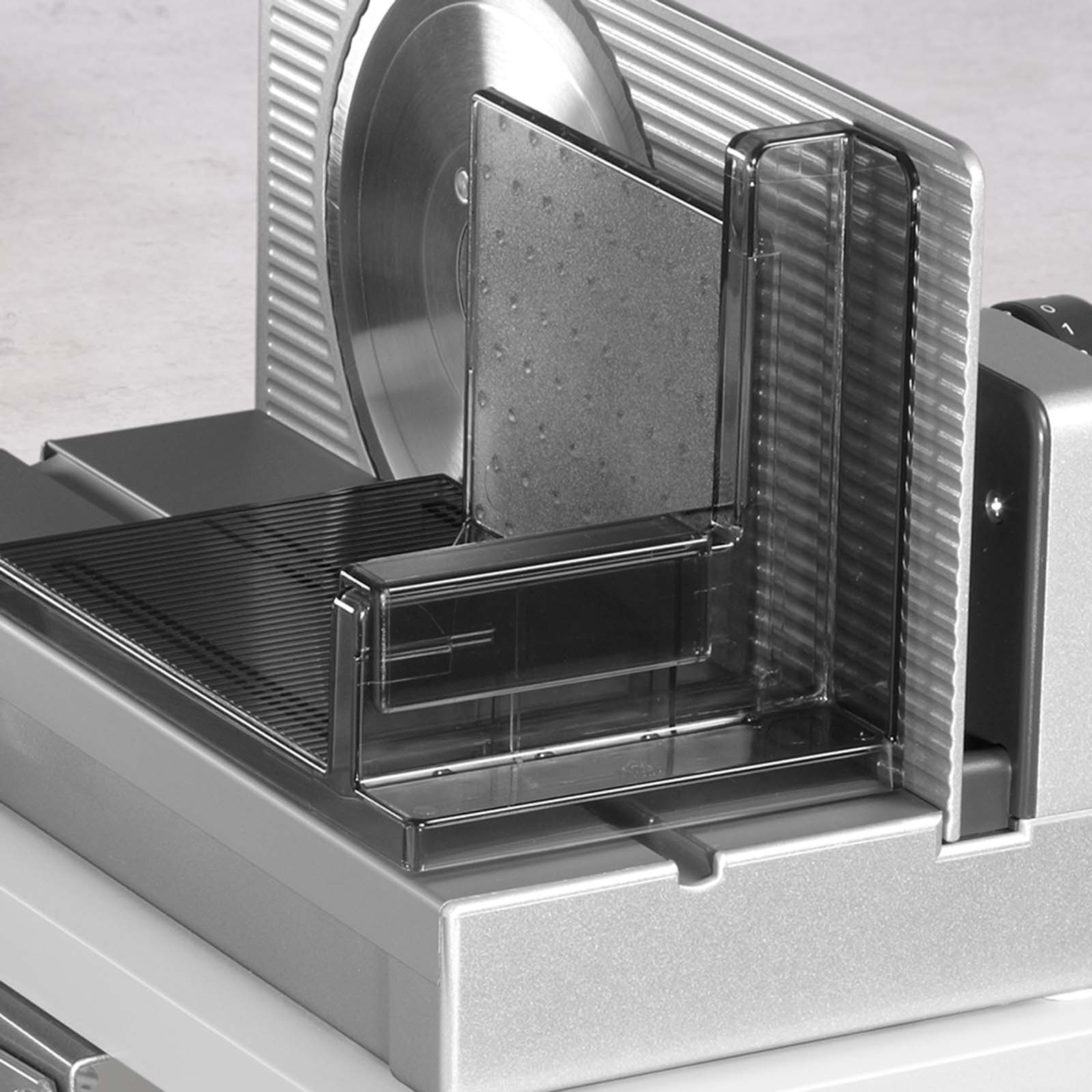 - Dieses Gerät darf nicht ohne Schneidgutschlitten oder Restehalter benutzt werden, es sei denn die Größe und Form des Schneidguts lässt deren Gebrauch nicht zu.