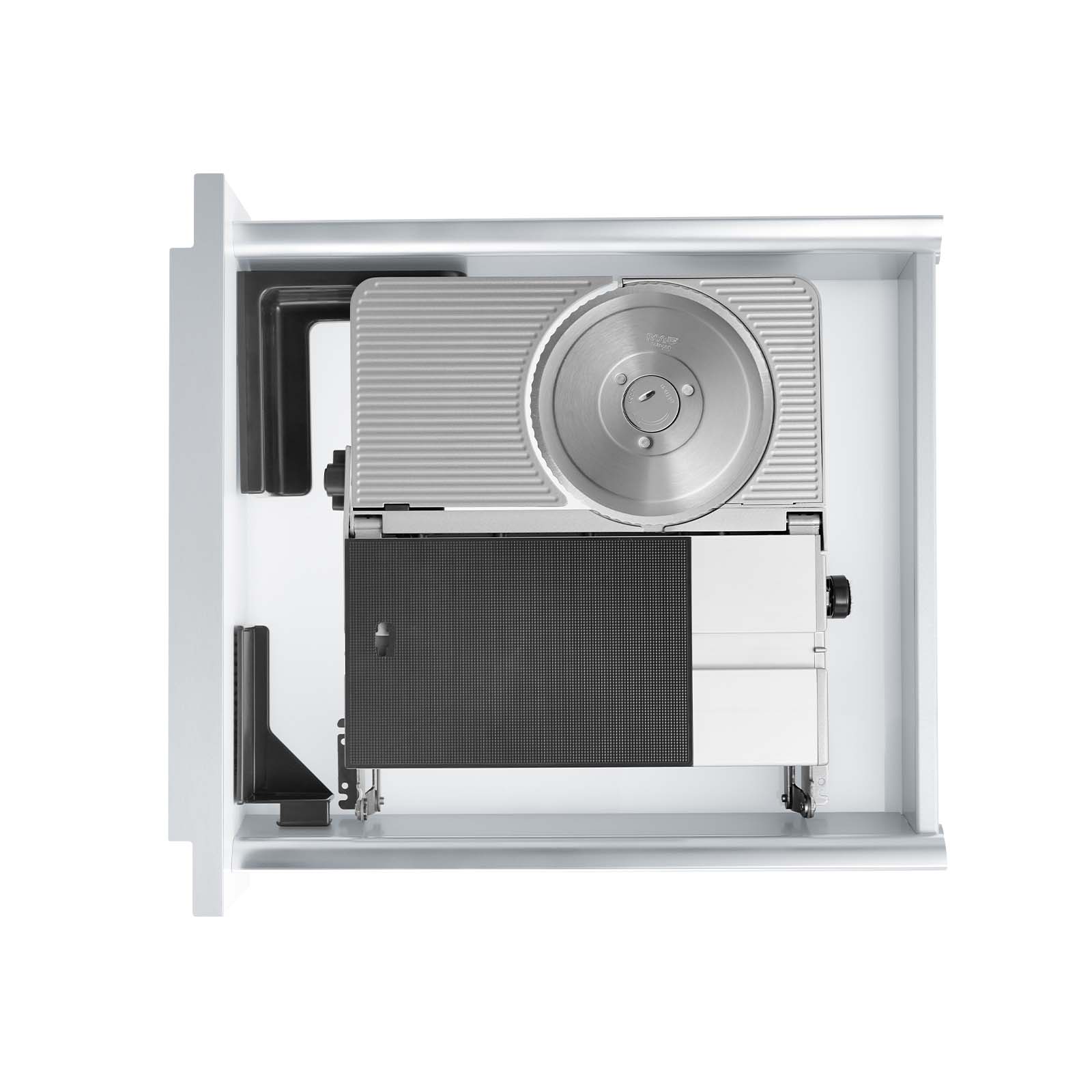Food slicers built into kitchen drawers are space-saving and yet always within reach. The built-in solution also frees up space on the countertop.