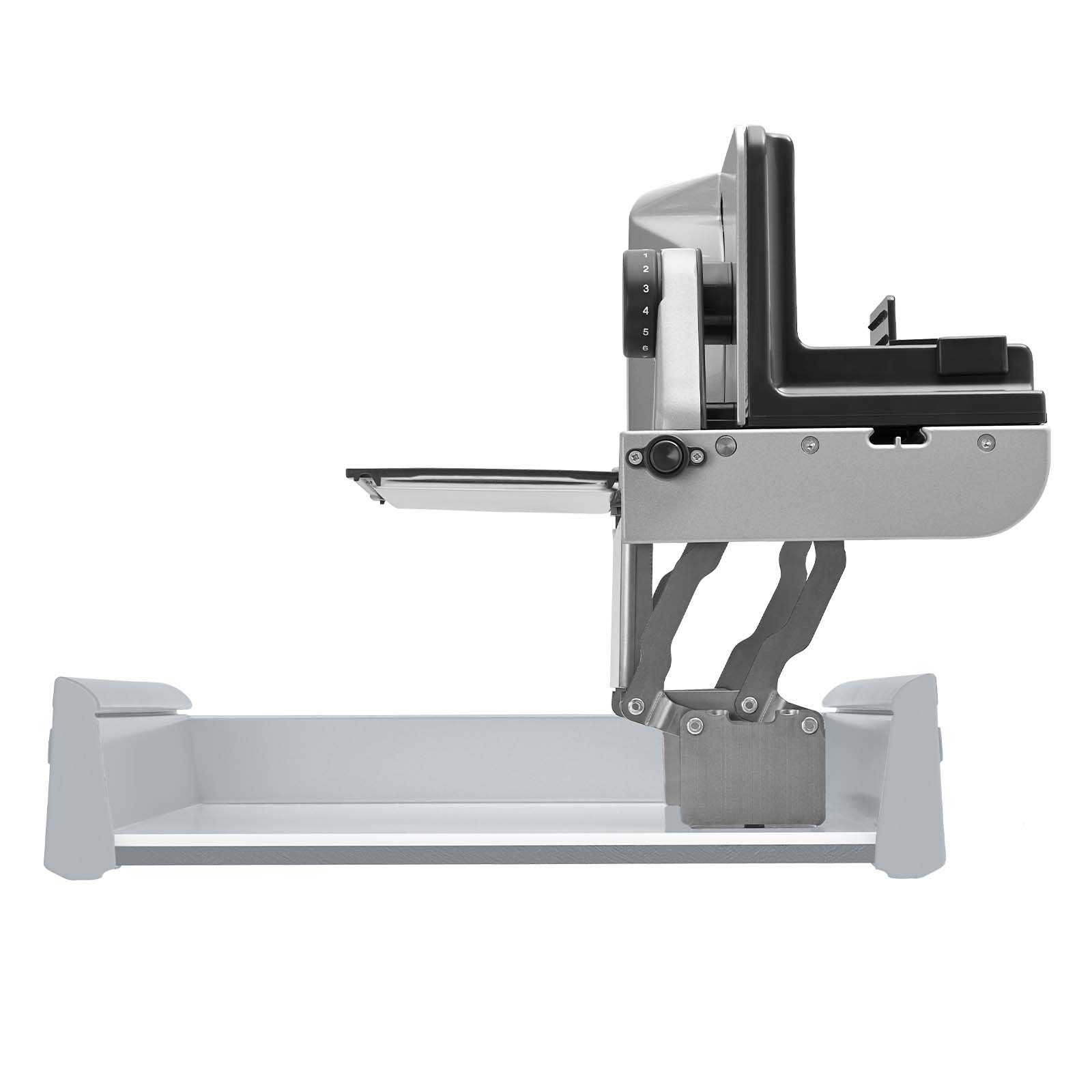 The AES 62 SR-H built-in food slicer is the perfect solution for modern kitchens that value functionality and space-saving. With this practical appliance, which is specially designed for installation in standard drawers from a cabinet width of 50 cm, you can create valuable space on your worktop. The requirements for installation are simple: the clear width must be over 392 mm and the distance from the drawer base to the top edge of the worktop should be between 165 mm and 210 mm.