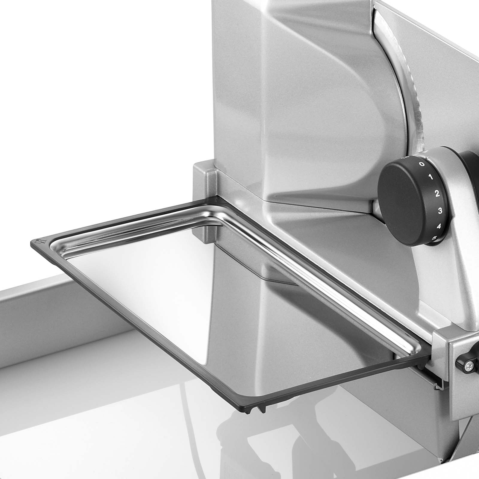 The food tray to catch the sliced food is placed underneath the circular blade so that the slices can fall directly onto it. The sliced product can be conveniently and directly served using the practical food tray made of high-quality, easy-to-clean plastic.