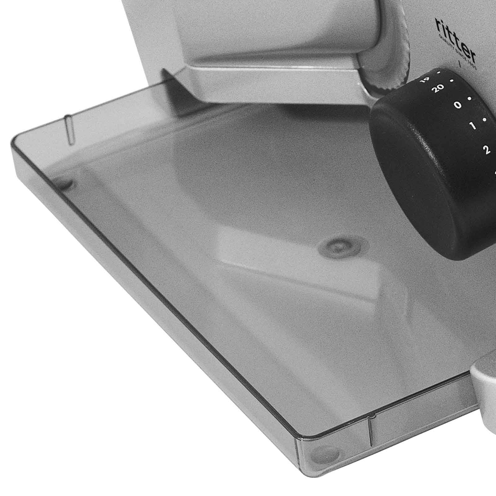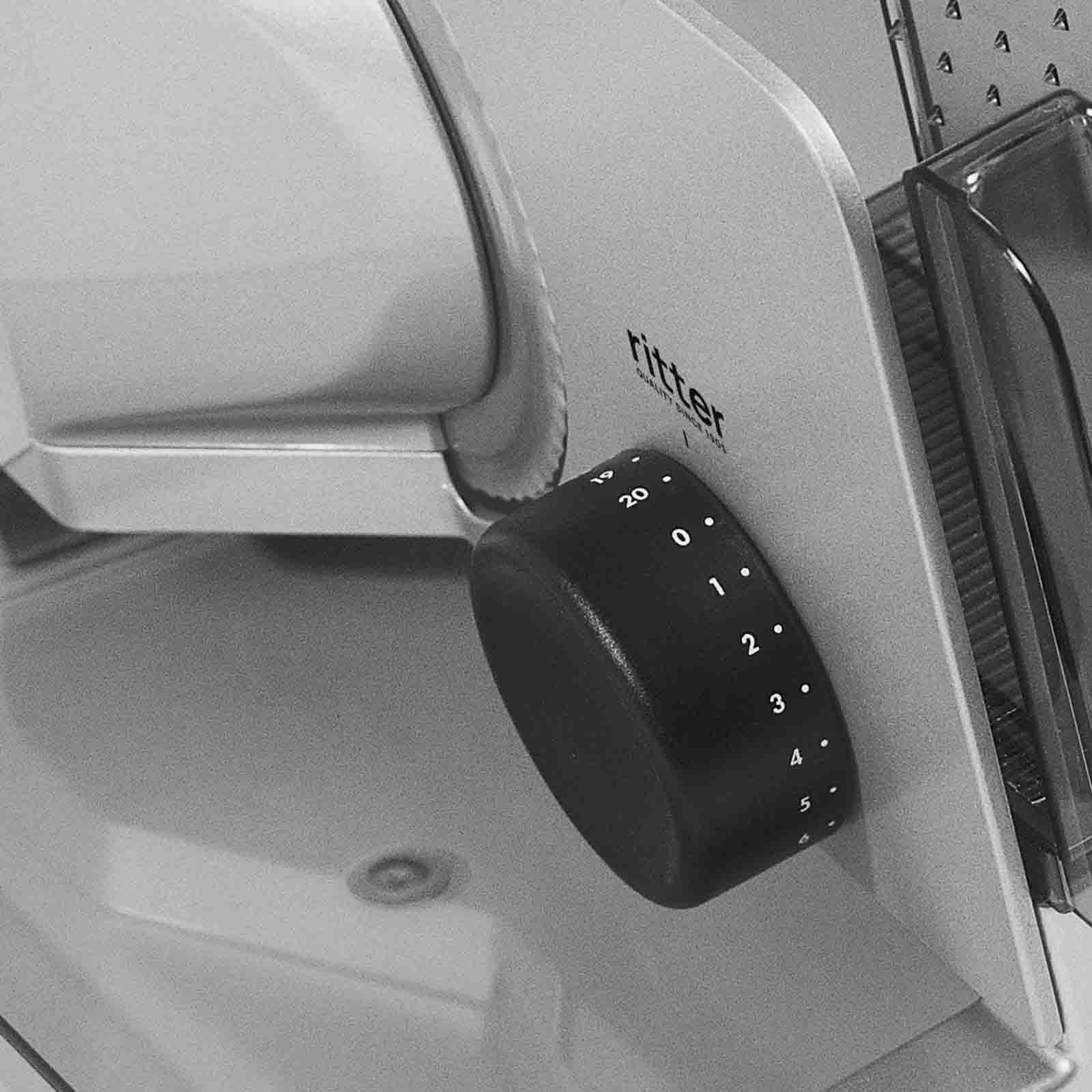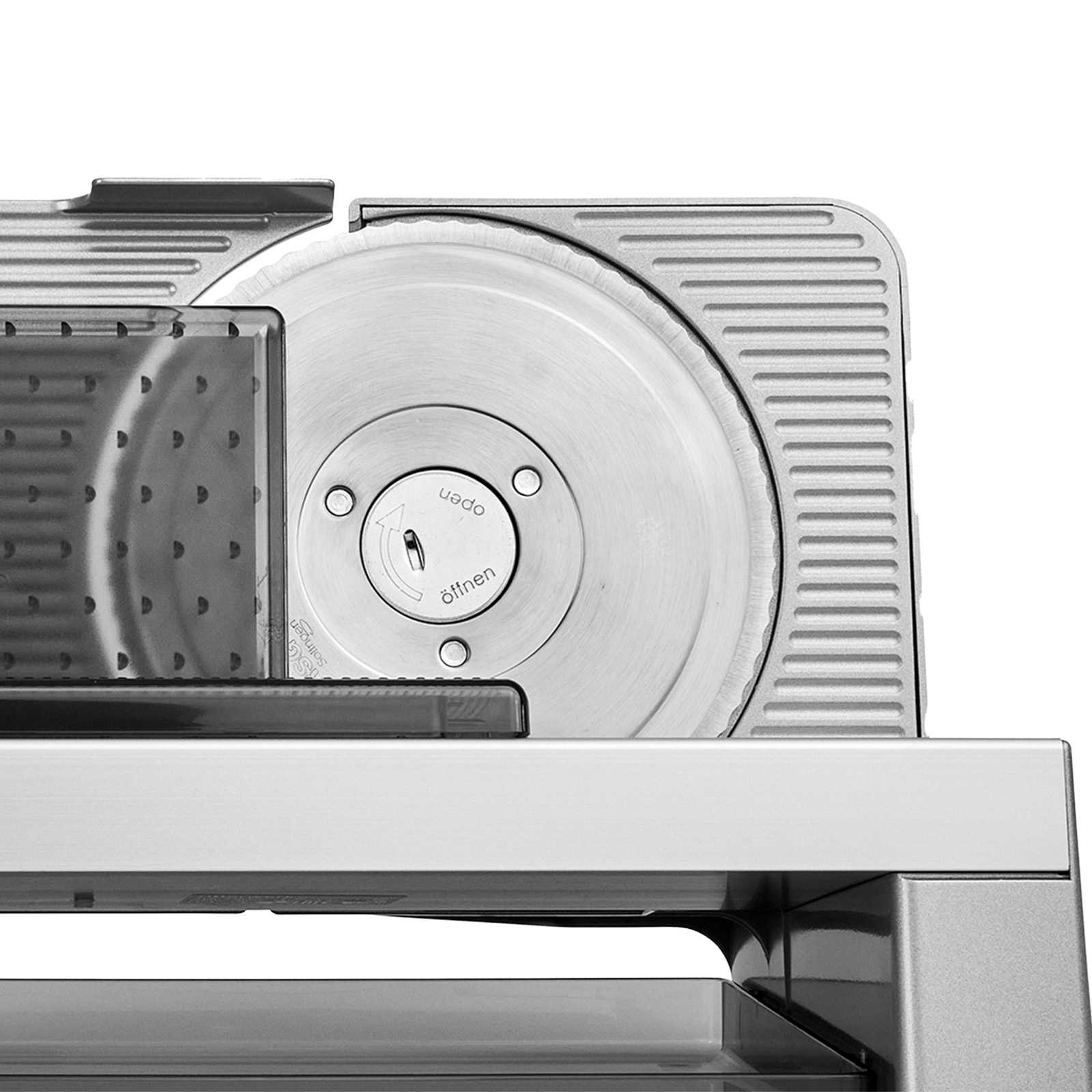 The E 16 food slicer has a 65 watt Eco motor, which is 20% more economical and 50% more powerful than its predecessor.