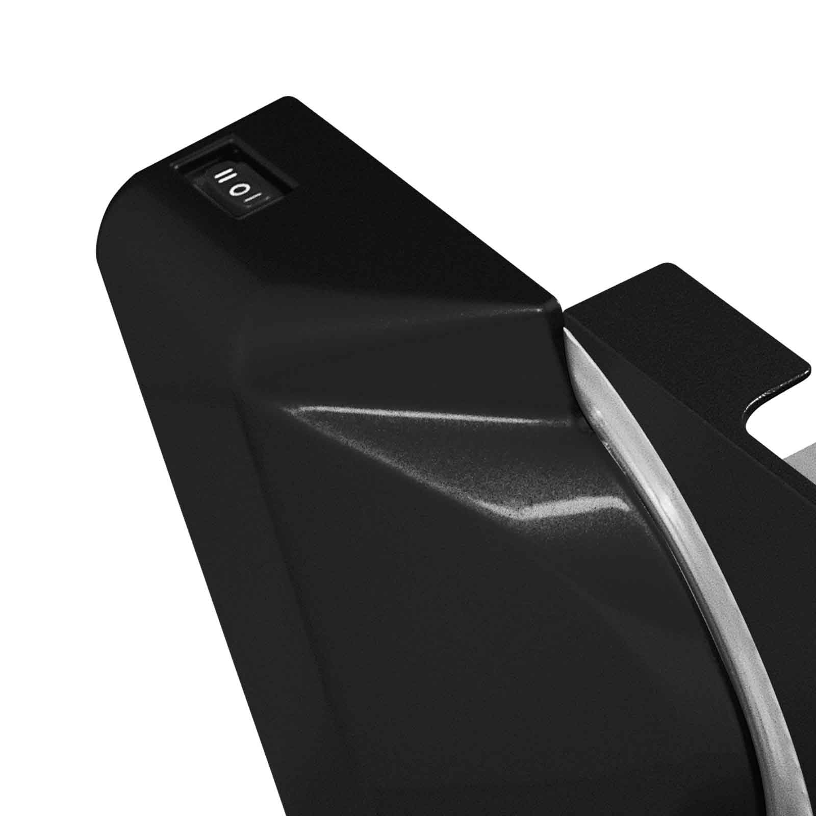A food slicer with all the advantages of the inclined and solid metal construction. Compact and handy, this small machine can easily tackle all kind of slicing jobs.